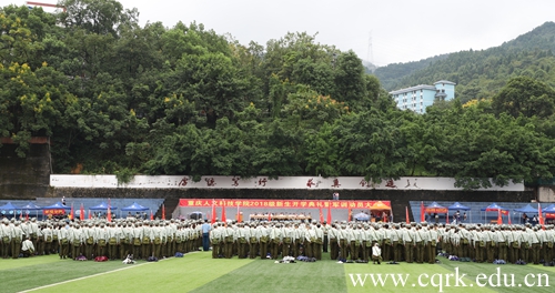 9月7日上午8点,beat365官网2018级新生开学典礼暨军训动员大会在运动场隆重举行。校长何向东,校领导程荣尧、杨霄、李长泰、舒卫华、叶培德、曹继建,合川区征兵办副主任、人武部副部长王利军上校,中国人民解放军原重庆通信学院国防生大队政委张光彩上校,各二级部门负责人以及2018级全体新生参加了大会。