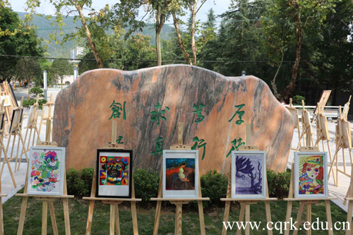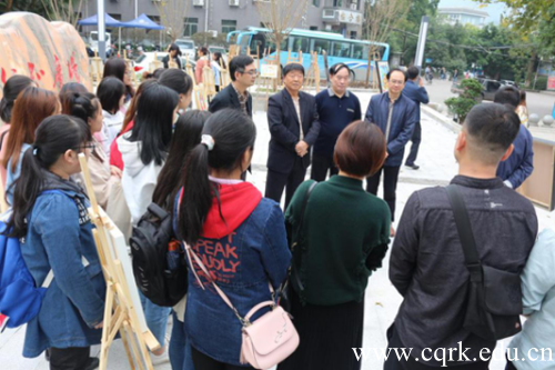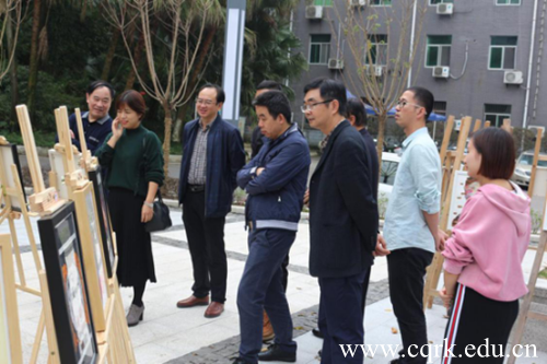 成果汇报展上,张晓东老师详细讲解每幅作品的创作灵感、背景以及制作过程。校领导仔细鉴赏每一幅作品,对学生创作水平赞不绝口。
