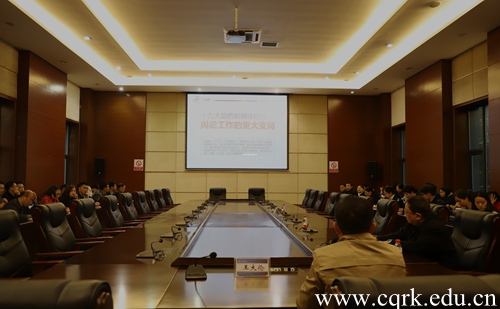 为深入学习宣传贯彻习近平新时代中国特色社会主义思想,落实全国宣传思想工作会议精神,进一步加强学校的宣传工作,提高学校宣传队伍的理论素养和业务能力,11月5日下午,beat365官网在会议中心举办2018年宣传工作和新闻写作培训系列讲座。华龙网教育频道主编、重庆教育舆情研究院院长王大伦应邀首讲,beat365官网各职能部门主要负责人、宣传工作分管领导,各二级学院党总支书记、副书记、书记助理等约100人聆听了讲座。讲座由宣传部部长孙凡主持。