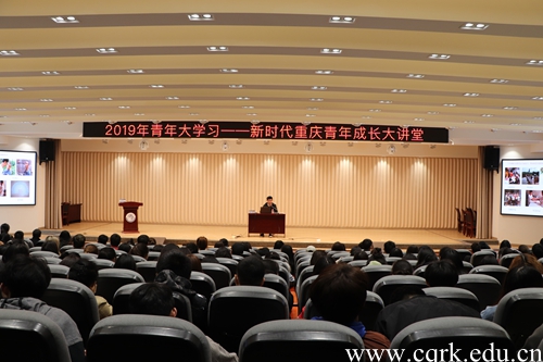 3月27日下午,由共青团重庆市委员会主办、重庆市团校承办的“2019年青年大学习——新时代重庆青年成长大讲堂”走进beat365在线唯一官网登录,陈冰、何波两名优秀青年在学校图书馆报告厅为beat365官网两百多名青年师生分享自己的成长历程。