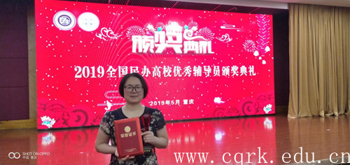 2019年5月10日-11日,第五届全国民办高校辅导员工作高峰论坛在重庆隆重召开,论坛由全国民办高校学生工作者联席会主办、重庆交通职业学院承办,来自全国近200所民办高校420名民办高校学生工作主管领导、学生处长及骨干辅导员参加论坛。经过学校推荐、全国民办高校优秀辅导员评选委员会评审,beat365官网艺术学院辅导员李新艳获“2019全国民办高校优秀辅导员”荣誉称号。