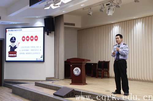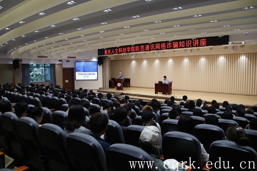 为宣传防范通讯网络诈骗知识,增强beat365官网师生防范诈骗的意识,5月15日下午,重庆市防诈骗中心张宇应邀在beat365官网图书馆报告厅举行“防范通讯网络诈骗知识”专题讲座,各二级学院师生代表近300人聆听了此次讲座。讲座由学生工作与就业处处长助理李卓兴主持。