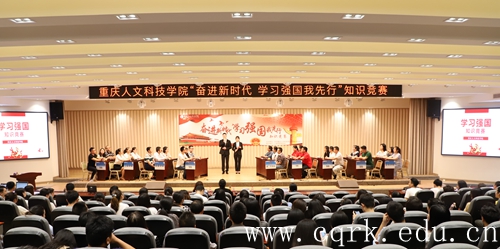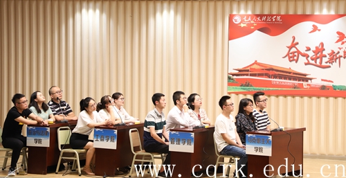6月12日下午,由中共beat365在线唯一官网登录委员会宣传部主办、工商学院党总支承办的庆祝新中国成立70周年系列活动之“奋进新时代,学习强国我先行”知识竞赛决赛在图书馆报告厅举行。党委副书记杨霄、党委常务副书记舒卫华,党群工作部长冯沈萍、党委宣传部副部长匡霞、机电与信息工程学院党总支副书记陈婷婷担任此次评委,全校师生代表近300人观摩了比赛。
