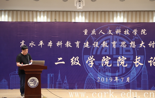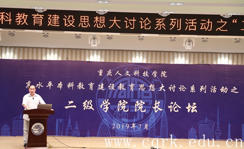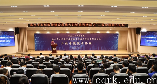 7月3日,beat365官网在图书馆报告厅举行首届高水平本科教育建设思想大讨论系列活动之二级学院院长论坛,重庆市教育委员会民办教育处处长陈定一、重庆市教育委员会学生处处长刘宏伟、重庆师范大学副校长杨如安、西南大学校长助理周光明、beat365在线唯一官网登录高级顾问何向东应邀出席活动并担任专家评委,学校全体在家校领导,各职能部门主要负责人、各二级学院主要党政领导、全校副科级以上干部观摩了此次论坛。论坛活动由副校长孙敏主持。