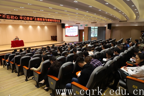 匡霞在主持报告中指出,与会同志要按照“不忘初心、牢记使命”主题教育活动要求,以主题教育专题辅导为契机,围绕学习贯彻习近平总书记新时代中国特色社会主义思想,学原理,悟原理,以理论滋养初心,以理论引领使命,不断在深入学习中吸取科学智慧和理论力量,并把学习成效体现到增强党性、提高能力、改进作风、推动工作上来,为推动学校事业改革发展贡献智慧和力量。