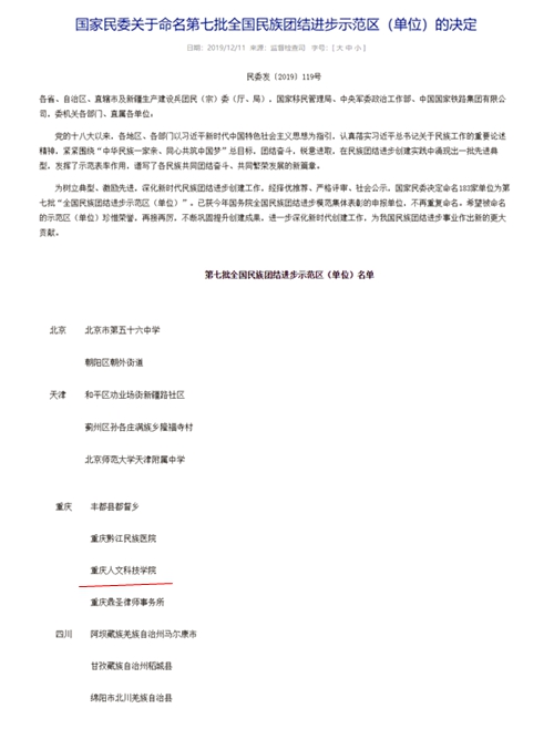 为树立民族团结进步创建工作先进典型,激励先进,深化新时代民族团结进步创建工作,经择优推荐、严格评审、社会公示,国家民委近日发布决定,命名183个第七批全国民族团结进步创建示范区(单位),beat365官网名列其中,是市内唯一一所获此殊荣的高校。
