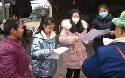 这位同学来自重庆市武隆区火炉镇车坝村。放假期间,石嘉洛听说新型冠状病毒肺炎的传播能力特别强,危害特别大。于是主动向村里的村长书记申请担当巡逻员,协助村里领导开展工作。自1月28日起,每天9点到晚上8点,石嘉洛在村里领导的安排下,与村里领导干部一起,一家一家巡逻,一家一家宣传病毒的危害和处理方法,也会及时劝阻村里聚众打麻将行为,并对外来人口登记,以及督促武汉返乡的人员按规定居家隔离、定期检查等,并且记录上报。