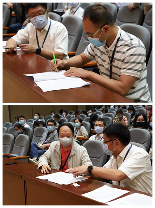 资产处副处长万莹、文学与新闻传播学院党总支书记彭涛分别代表学校各职能部门和二级学院,就部门开展全面从严治党典型经验做了交流发言。各职能部门、各二级学院与党委书记张辉签订了2020年《党风廉政建设责任书》。