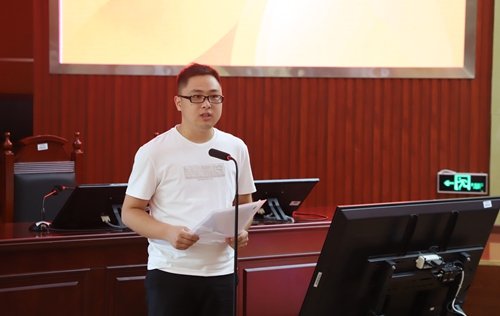 马克思主义学院新进教师覃德强代表新进教师作了交流发言,声情并茂地谈了自己入职的切身感受与体验,感谢学校的热情接待与细致入微的关怀,交流了自己对践行陶行知先生教育思想的认识与传承,争做“教学做合一”的实践者与践行者,教人求真,学做真人,“甘将心血化时雨,润出桃花一片红”,用青春和汗水成就学生和学校的明天。