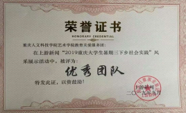 “2019重庆大学生暑期三下乡社会实践”风采展示优秀团队荣誉证书