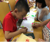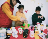 图一、三为孩子们的手工作业,图二为部分人员合影