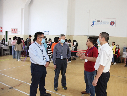 9月16日上午,校长张跃光、党委书记张辉,党委常务副书记舒卫华在学校相关职能部门负责人的陪同下,分别率队来到校内外各迎新站点,检查指导迎新工作开展情况、慰问坚守在迎新一线的师生。