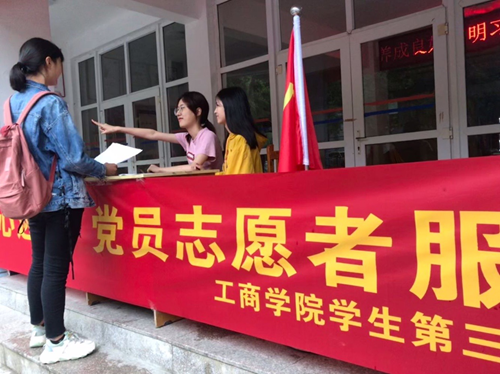 工商学院学生党员们用最耀眼的方式亮出党员身份、展示党员风采、履行党员责任,成为迎新现场一道亮丽的风景,他们在迎新工作中充分发挥了党员的先锋模范作用,为迎新工作提供了“新助力”。