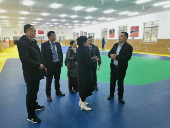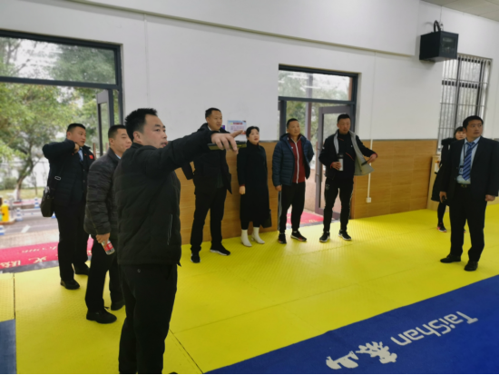 肖宇翔带领胡应国一行参观介绍了beat365官网的体育场馆设施。