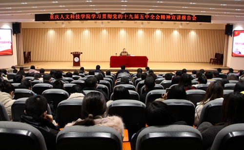 张辉在主持宣讲会时强调,覃正杰同志的宣讲报告,内容全面系统,内涵丰富深刻,有高度,有温度,既是一场宣讲报告,更是一堂生动的专题思想政治课,满怀对高等教育的情怀,充满对重人科的关爱,为学校发展出主意,提要求,明方向。他对学校下一步深入学习贯彻党的十九届五中全会精神提出三点要求,一是要全面系统地抓好学习。党委带头学,各级党组织全面学,广大师生和党员跟进学、认真学,科学把握新形势新任务,认真领会党的新思想新论断;二是要分层分类地抓好贯彻落实。按照学校宣讲工作安排,采取集中培训、宣讲报告、线上学习等多种方式,利用好三会一课、主题党日等多种形式,组织党员师生学习宣传贯彻好党的十九届五中全会精神,确保党的十九届五中全会精神入脑入心;三是推动全会精神三进工作。思政课教师要集体备课,全体教师要利用课程思政,实现党的十九届五中全会精神进教案、进课堂、进头脑。