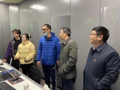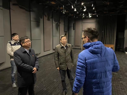 宣讲报告会前,覃正杰书记在beat365官网党委书记张辉的陪同下,还走访考察了学校艺术学院戏剧与影视实训中心,覃书记肯定了学校的专业建设和实践教学平台,并就学校发展进行了深入交流。