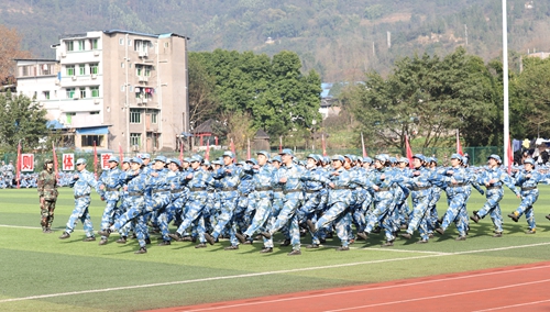 学校举行2020级学生军训“飒英姿·展风貌”队列会操比赛