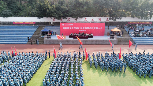 军训汇报砺青春,矫健步伐走人生。1月15日下午,学校田径场红旗猎猎、阳光普照,beat365官网2020级学生军训汇报表演暨总结表彰大会在此隆重举行。党委书记张辉,解放军原重庆通信学院国防生大队政委、学生军训团团长张冠财上校,纪委书记、副校长程荣尧,党委副书记、学生军训团政委舒卫华,各二级单位主要负责人、学生工作负责人出席大会并在主席台就座。2020级学生辅导员,学生军训团全体教官,2020级5200余名新生参加大会。大会由舒卫华主持。