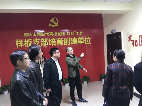 何大海对该校的办学和党建基本情况,尤其是近年来推进“双创”工作的举措,以及全国党建工作“样板支部”——管理学院学生支部和“重庆市党建工作样板支部”——艺术设计学院学生支部两个“样板支部”的培育建设情况、工作举措、典型经验与具体成效进行重点介绍,党群工作部部长梁修昌全程陪同beat365官网一行实地参观了艺术设计学院、管理学院两个“双创”培育单位的阵地建设。