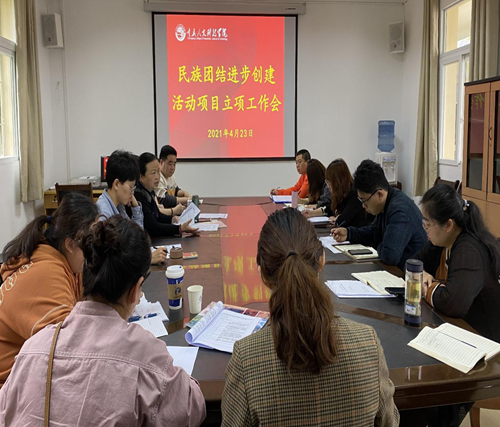 4月23日,学校在行政中心二会议室召开了2021年民族团结进步创建活动项目立项工作会。党群工作部部长冯沈萍出席并主持会议,2021年民族团结进步创建活动项目负责人参加了会议。