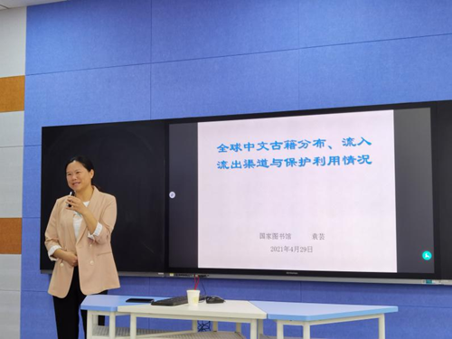 活动伊始,袁芸老师就“全球古籍分布情况、流出渠道与利用”作主题报告,于士洋老师以“互联网思维探索古籍数字化研究”为题作主题分享。