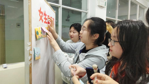 活动中,到场女生相互分享了在党的建设发展过程中让自己印象深刻的励志话语,现场向全体女生逐一发放了印有励志暖语的小纸条。