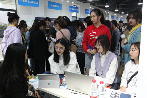 虽然阴雨绵绵,但双选会现场人头攒动,气氛热烈。来自重庆、成都、深圳三地的50余家对口单位走进学校,为毕业生提供了约900个就业岗位。300余名毕业生积极向心仪单位投递简历,参加面试。