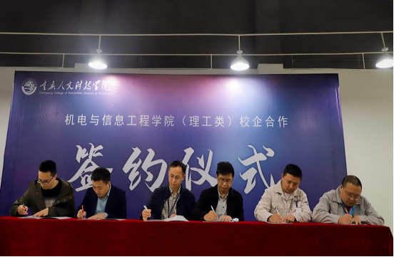 经过反复洽谈磋商,招聘会当日,学校还与重庆富川古圣机电有限公司、重庆铃耀汽车有限公司、重庆中伟欣诚科技有限公司、重庆至信事业集团有限公司、四川瑞创汽车科技有限公司5家企业举行了校企合作签约仪式。仪式由机电与信息工程学院党总支书记陈婷婷主持,孙敏与用人单位签订校外实践教学基地协议,双海军与用人单位签订就业基地协议。