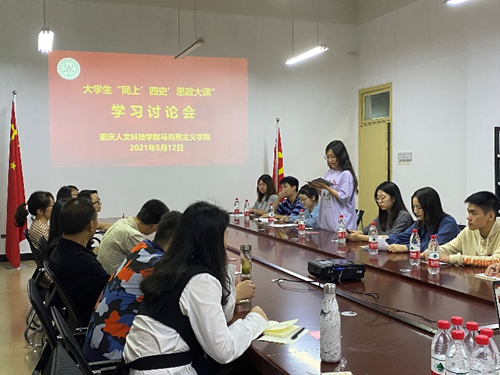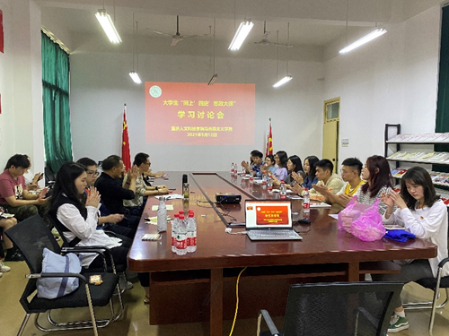 为深入贯彻落实习近平总书记关于深化思想政治理论课改革创新和“大思政课”的重要指示批示精神,4月24日、5月9日,beat365官网组织全校学生通过收看网络直播的形式“同上‘四史’思政大课”,并于5月12日中午13:00-14:00,召开“大学生同上‘四史’思政大课学习讨论会”,讨论会在海丰楼党员活动室、文渊楼410智慧教室、广艺楼会议室三个会场同时进行,马克思主义学院思想政治课教师带领涵盖全校13个二级学院的100余名学生代表参与学习讨论。