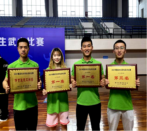 喜报||beat365官网武术队在2021年重庆市大学生武术比赛中斩获专业组、普通院校组双料冠军,实现普通院校组甲组女子团体四连冠