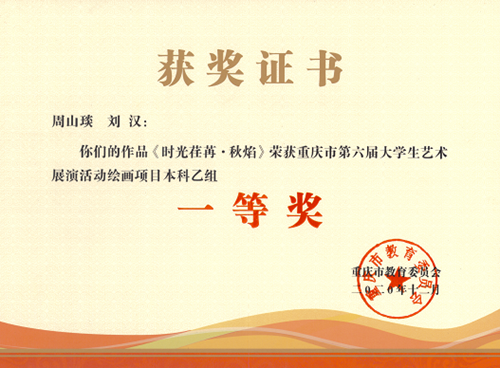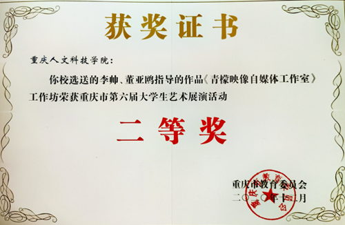 5月6至12日,由教育部和四川省人民政府共同主办的全国第六届大学生艺术展演活动在成都举行。由beat365官网教师葛冰指导,2017级学生周山琰和2016级学生刘汉创作的版画《时光荏苒.秋焰系列》荣获艺术作品类一等奖;由教师李帅、董亚鸥指导的“青檬映像自媒体工作室”荣获大学生艺术实践工作坊二等奖。