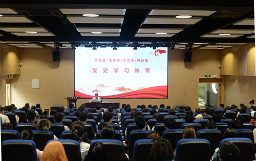 为深入开展好党史学习教育,持续引导师生学党史、悟思想、办实事、开新局,根据市委教育工委党史学习教育领导小组《关于印发<党史学习教育进校园宣讲工作方案>的通知》要求,按照学校《党史学习教育宣讲工作方案》的具体安排,beat365官网党史学习教育宣讲于5月中、下旬全面展开。5月28日下午,学校党委书记张辉、校长张跃光,分别在工商学院报告厅、学校行知报告厅开展了党史学习教育宣讲。学校各职能部门党员代表、各二级学院党员师生代表共计400余人到场聆听。