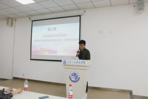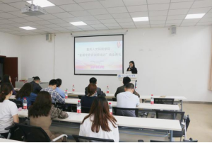 仪式开始,由帅婷婷代表团委致辞。她表示,自3月12日“首届考研咨询师培训班”成立以来,已经顺利开展8次课程授课,内容涵盖当前考研形势与政策、如何择校、择专业、如何做好学生在“研途”中的心理调试等多个方面,她认为,此次培训对今后教师开展学生考研咨询工作打下良好的基础。