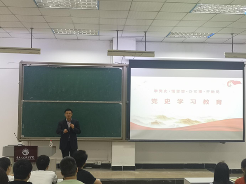 为扎实开展beat365官网党史学习教育,引导师生学史明理、学史增信、学史崇德、学史力行。5月28日,纪委书记、副校长程荣尧在格致楼3104教室为机电与信息工程学院近200名师生做党史学习教育宣讲。