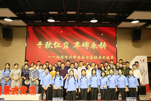 为庆祝中国共产党成立100周年,认真贯彻落实习近平总书记在党史学习教育动员大会上的讲话精神,深入推进党史学习教育。6月7日晚7点,管理学院党总支在海丰楼报告厅开展《千秋红岩 丰碑永铸》情景式党课展示活动。活动由管理学院党总支主办,团总支学生会、蜜蜂研习社承办。党委书记张辉、党委副书记舒卫华,宣传部副部长匡霞、管理学院院长周沛、管理学院常务副院长邓旭升以及部分学院党总支书记、辅导员代表出席活动。此次活动也是管理学院党史学习教育的一次创新性实践。