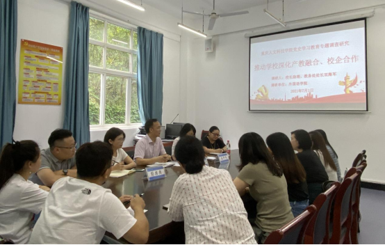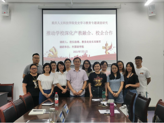 为深入推进党史学习教育,切实解决学校改革和发展问题。7月1日下午,校长助理双海军到外国语学院就深化产教融合、校企合作开展专题调研,外国语学院党政班子成员,教师代表和辅导员代表参加了本次调研。