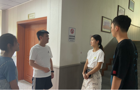 实习指导教师张扬(左二)走访调研学生实习情况