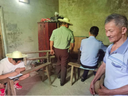 2019级学生冷熙凌(左一)在垫江县太平镇群力村对应征入伍青年进行政治审核