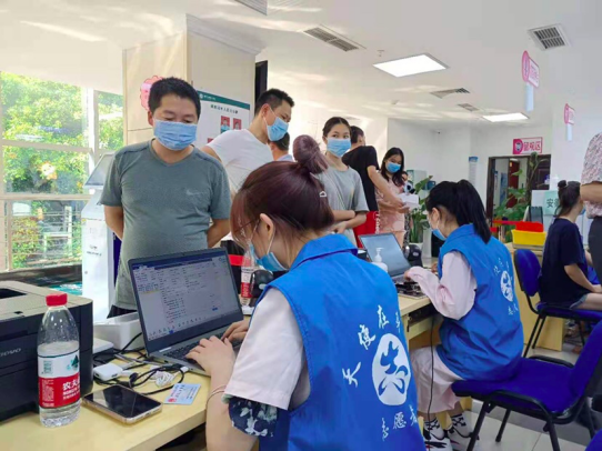 2019级学生熊倪(左一)在重庆市永川区人民医院进行疫苗接种登记工作