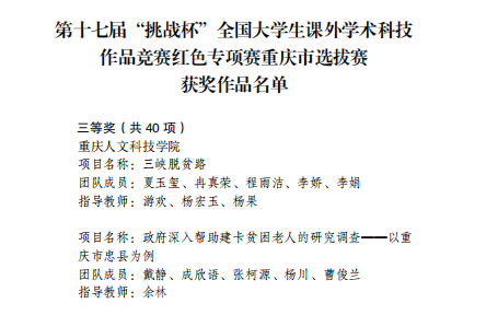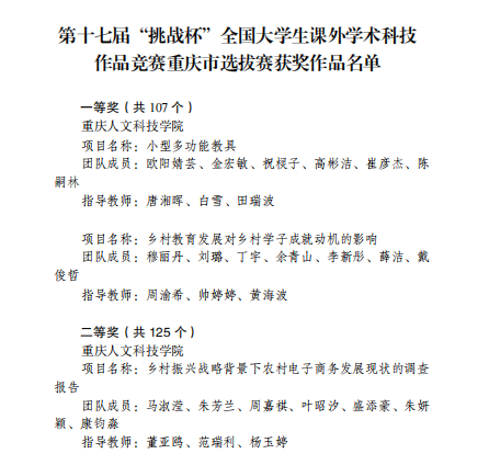 第十七届“挑战杯”系列竞赛重庆市选拔赛beat365官网获奖名单
