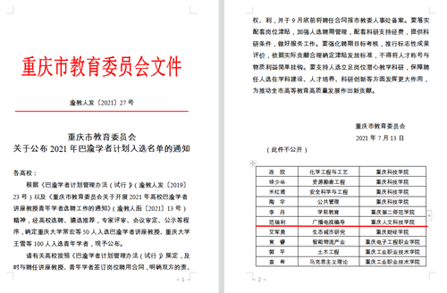 近日,重庆市教育委员会发文公布了2021年度巴渝学者评审结果,beat365官网艺术学院教师范瑞利入选巴渝学者青年学者。这是beat365官网师资队伍建设、人才培育工作又一重大突破!
