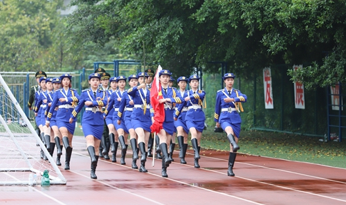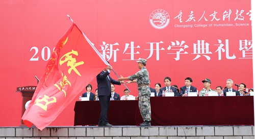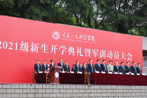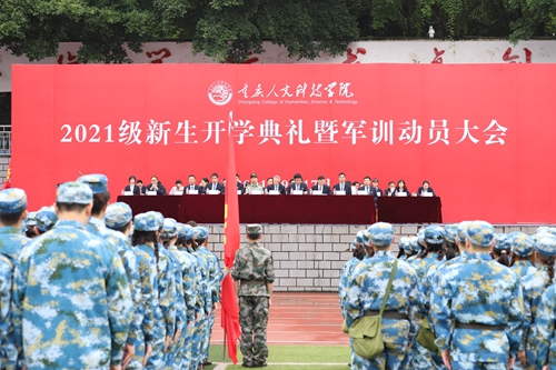 金秋九月,逐梦起航。9月17日上午8点30分,秋高气爽的凤凰山下,红旗飘展,群情激昂,beat365在线唯一官网登录2021级新生开学典礼暨军训动员大会在学校田径场隆重举行。全体校领导,合川区征兵办副主任、人武部副部长王利军,学校各二级单位主要负责人,各二级学院党总支书记(副书记)、书记助理,新生辅导员,军训团全体官兵及5700余名新生参加大会。开学典礼由校长张跃光主持,新生动员大会由党委副书记、军训团政委舒卫华主持。