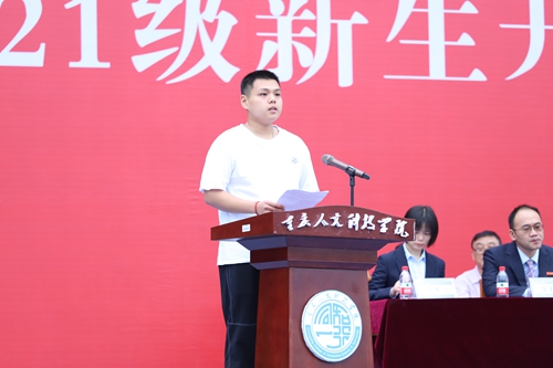 新生代表、文学与新闻传播学院向钇衡同学以“如果一个人不知道他要驶向何方,那么任何风都不是顺风;慧者心辩而不繁说,多力而不伐功,此以名誉扬天下”两句话表达了自己对大学四年生活的期待,呼吁全体同学珍惜时光和平台,去尝试、奋斗、发掘、探索,扬帆起航。