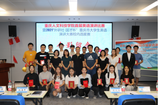 9月23日晚,由学校教务处主办、外国语学院承办的学校首届英语演讲比赛暨2021“外研社·国才杯”重庆市大学生英语演讲大赛校内选拔赛决赛,在国际学院报告厅顺利举行。校长助理、教务处处长双海军,外国语学院党总支书记兼副院长秦中书、副院长彭奕奕及教研室主任王欣、张大海出席比赛并担任评委。