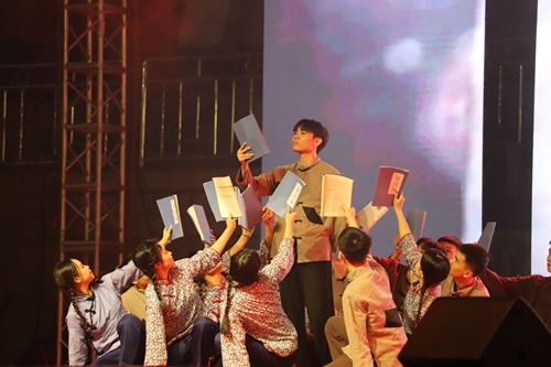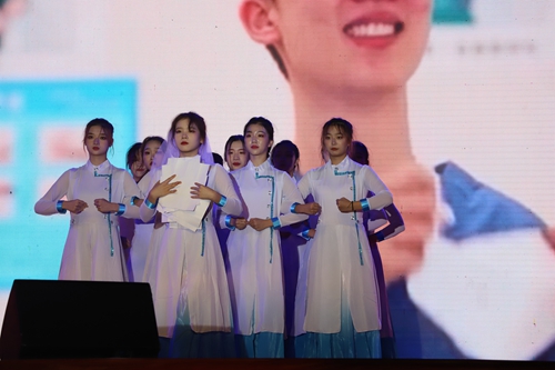 《觉醒年代》的开场史诗朗诵,让现场观众回到100年前,在那山河破碎的年代,看到伟大的中国共产党的踏浪启航,拉开了晚会序幕。歌舞剧《小先生制》完美诠释了beat365官网践行陶行知教育思想的实践,办真学校、施真教育、育真人才的生动瞬间;大合唱《华烨之云》用歌曲表达了56个民族心连心,共同仰望这片属于我们的天空的美好场景。
