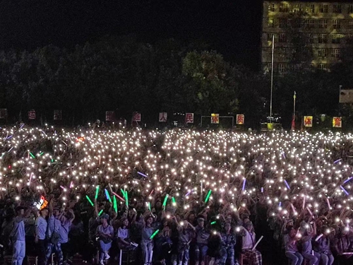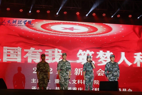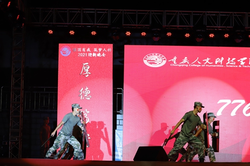 9月28日晚,“强国有我,逐梦人科”——庆祝中国共产党成立100周年暨2021迎新晚会在学校第一运动场隆重举行。校领导张跃光、张辉、曹勇、程荣尧、杨霄、舒卫华、孙敏,特邀嘉宾中国银行渝北支行副行长任家南,合川支行副行长吴和伟等出席晚会,各职能部门负责人,各二级学院党政领导、新生辅导员,军训全体教官以及2021级全体新生参加晚会。