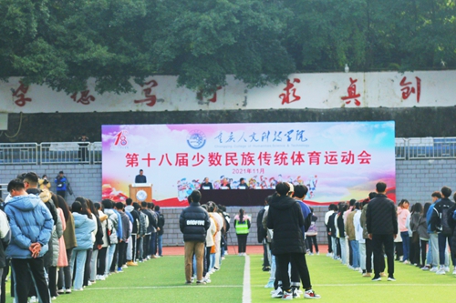 2021年11月26日下午,学校第十八届少数民族传统体育运动会在学校第一运动场成功举行。学校纪委书记、副校长程荣尧,党委副书记、副校长杨霄,统战部部长冯沈萍,团委书记韩亮,体育学院直属党支部书记胡志出席运动会,裁判员、运动员共1500余名师生参加运动会。运动会开赛仪式由胡志主持。