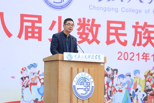 杨霄在开赛致辞中代表学校党政热烈祝贺运动会如期召开。他表示,学校是全国民族团结进步示范单位、重庆市少数民族传统体育基地,作为学校民族团结进步教育三大品牌之一的民族传统体育多年来有声有色,取得了骄人成绩。他指出,举办民族传统体育赛事有利于弘扬民族优秀传统文化,促进各民族同学交往交流交融。他希望,全体运动员在赛场上发扬更高、更快、更强、更团结的体育精神,积极进取,努力拼搏,赛出友谊,赛出成绩。