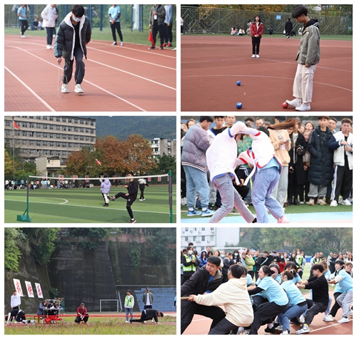 除正式比赛项目外,运动会还设有体验区,全校师生可在比赛当天自由组队现场体验押加、民族式摔跤、拔河、蹴球、毽球、板鞋竞速、滚铁环、陀螺等多个比赛项目。