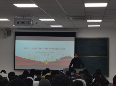 12月30日下午,党委副书记舒卫华走进政治与法律学院、体育学院,为近百名师生代表作党的十九届六中全会精神宣讲。